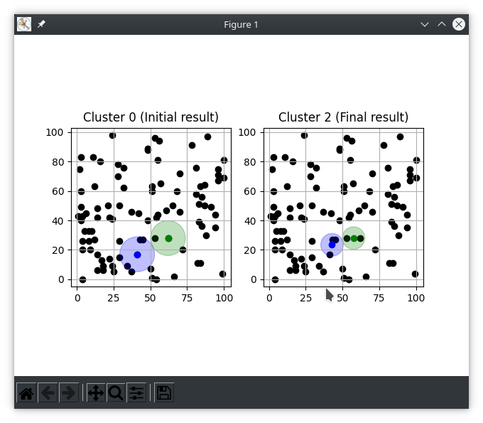 Initial cluster at (20.0000, 20.0000) moved to (20.6000, 20.6000)